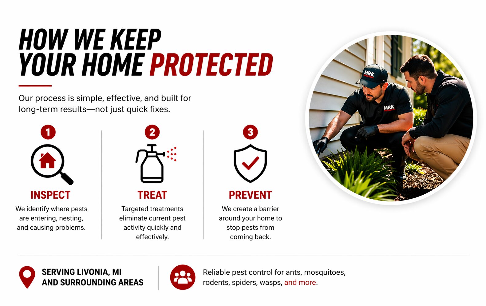 MRK Pest Control is committed to delivering superior customer service while providing prompt and efficient results. Our staff is dedicated to being responsive, knowledgeable, and honest. Our vision is to be recognized by our customers as experts in the industry while ensuring the products we use are environmentally friendly and safe for pets and children.